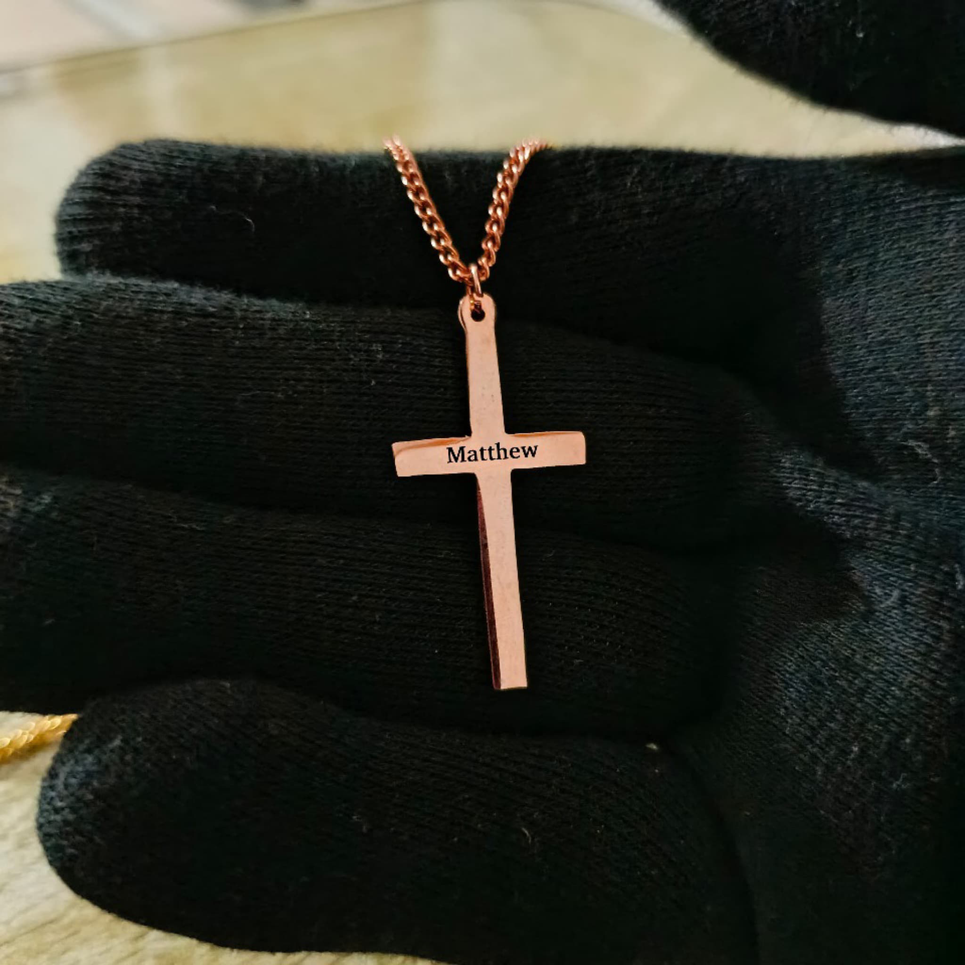"Such a beautiful necklace! I had my daughter’s name added to the cross, and it turned out better than I imagined.will purchase again"
