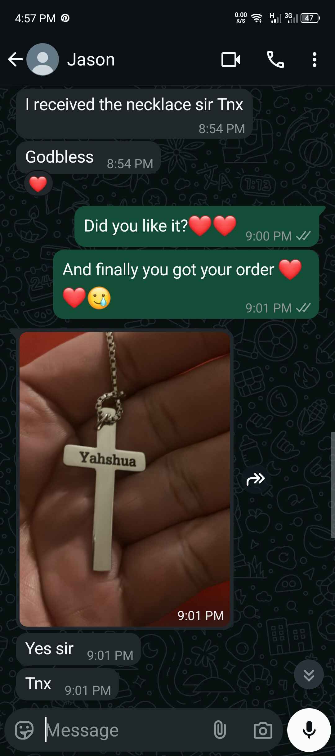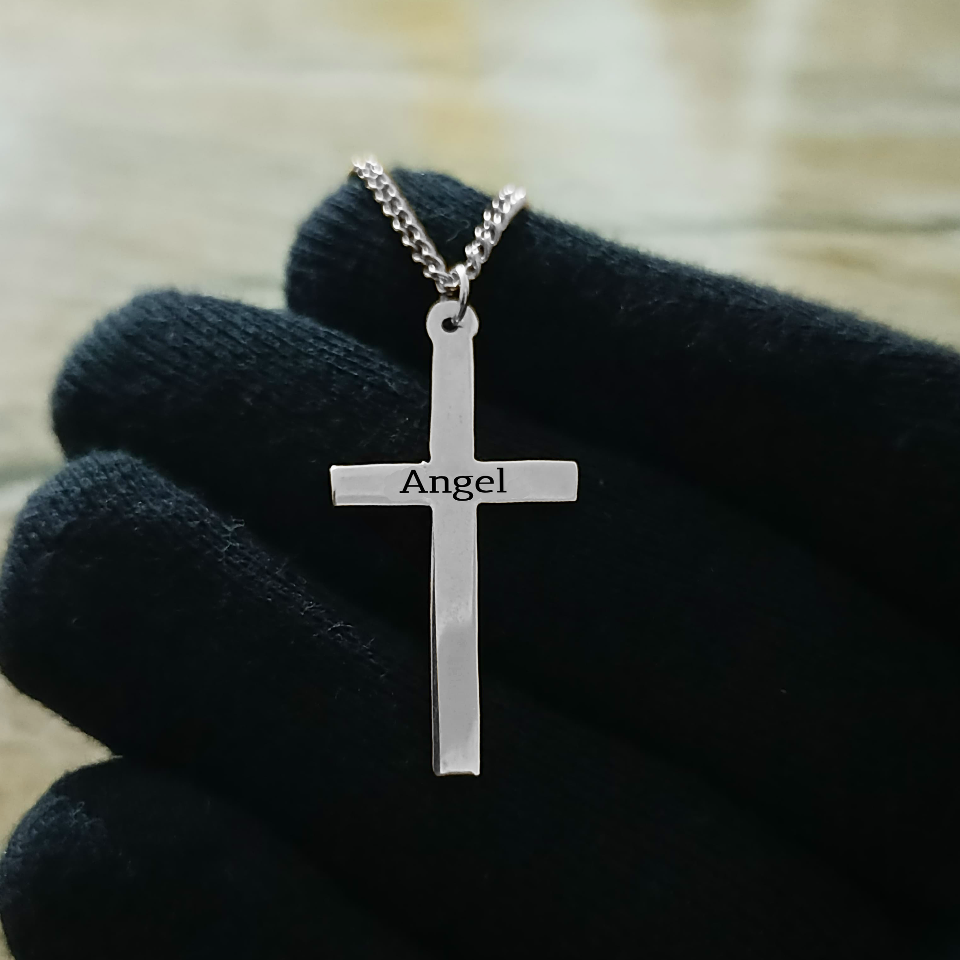"I purchased a cross name necklace for my friend’s baptism, and it was a hit! The engraving was perfect, and it was just the right size."
